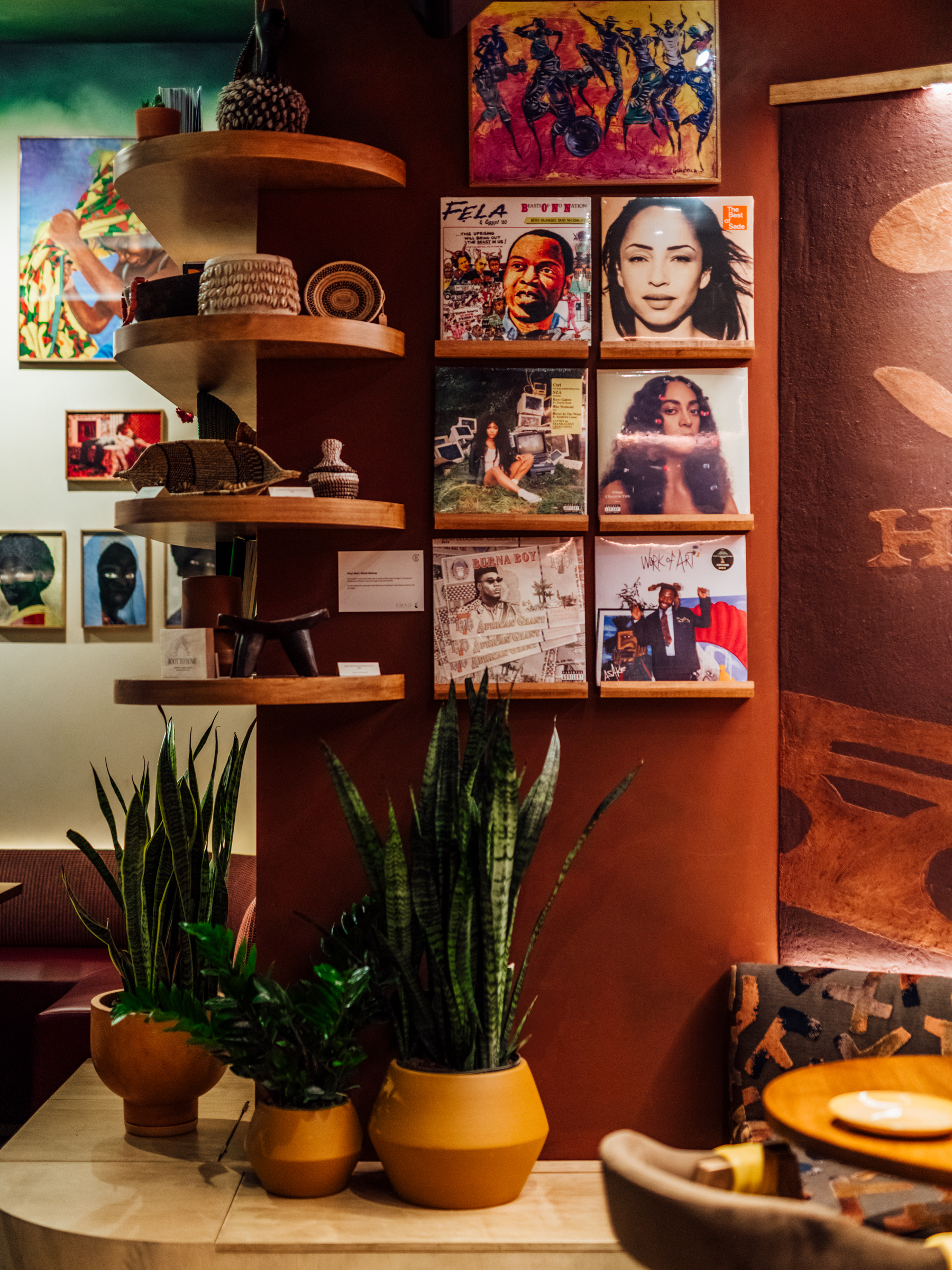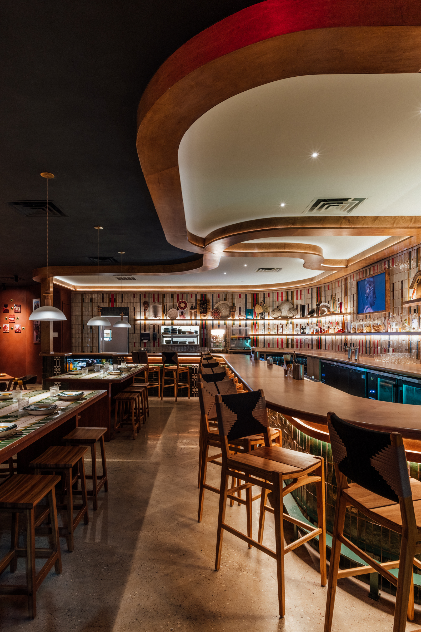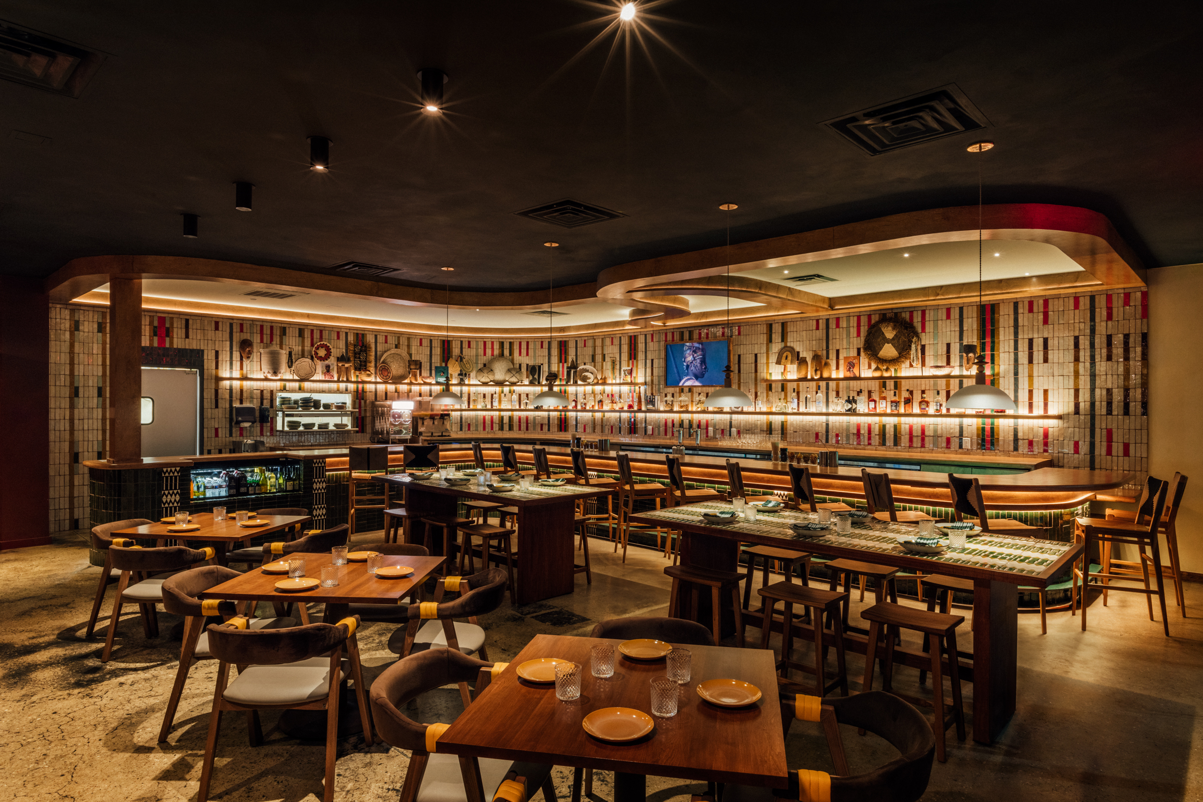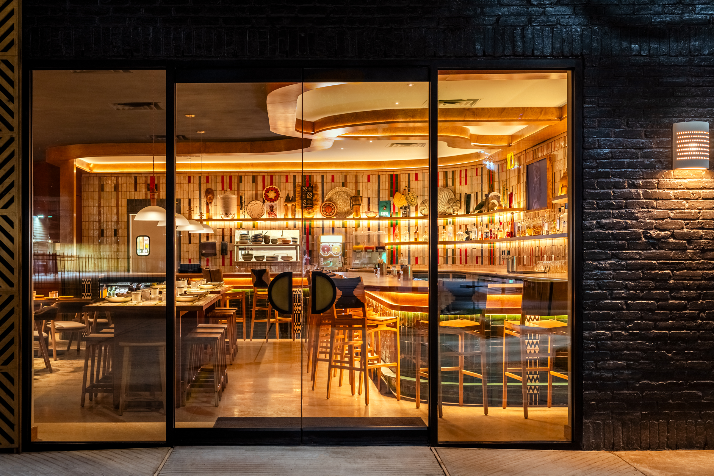 Our team collaborated to design a fresh new layout, expanded the outdoor dining and made the space efficient and effective for both counter service and full service dining. African culture is proudly displayed through materials, colors, decor and flexible entertainment space.
